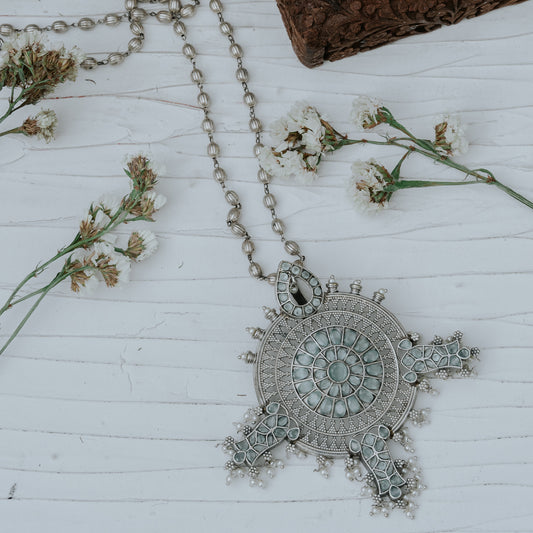 German Silver Peacock Motif With Pearl Hanging Earrings In Sale For Women & Girls
